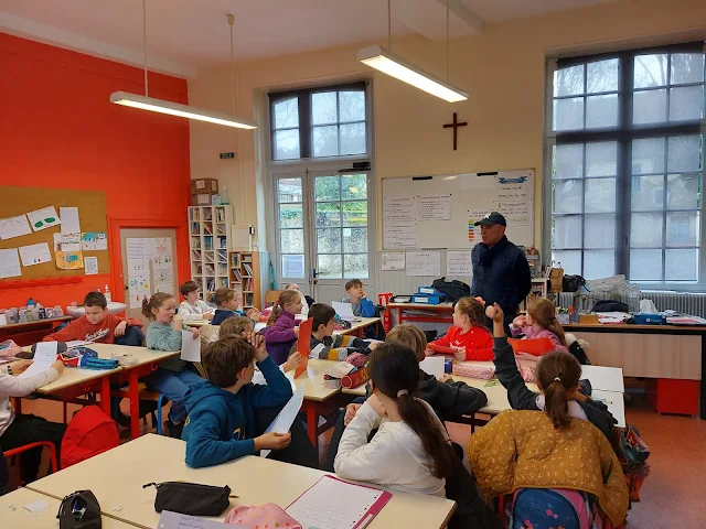 En lien avec le projet des arts à l'école, la classe de CM1/CM2 de l'école Saint Michel a reçu aujourd'hui Fathy, ancien danseur professionnel. Les enfants qui étudient en ce moment le conte et le ballet Casse noisette avaient préparé de nombreuses questions. Fathy a expliqué la formation pour devenir danseur, les exigences de la discipline et les joies du métier d'un danseur classique. Il a également insisté sur l'importance de pratiquer régulièrement un sport ou une activité artistique.